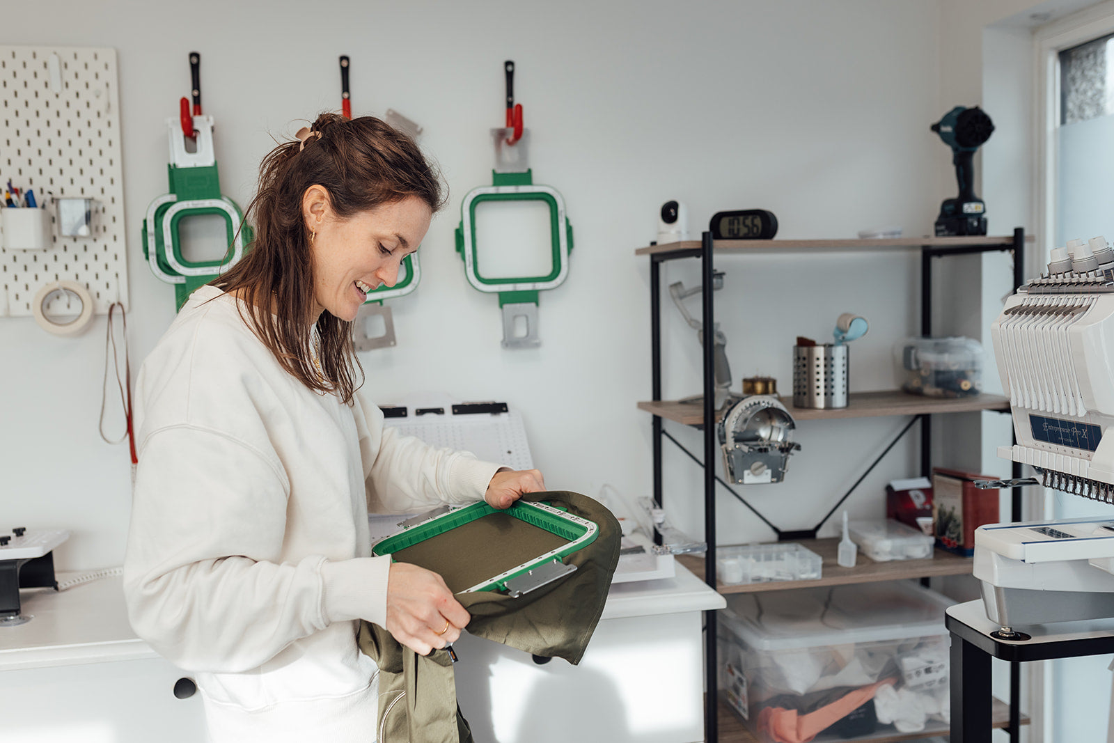 We komen ter plaatse met onze mobiele borduurmachine en personaliseren live op je event of in je winkel.